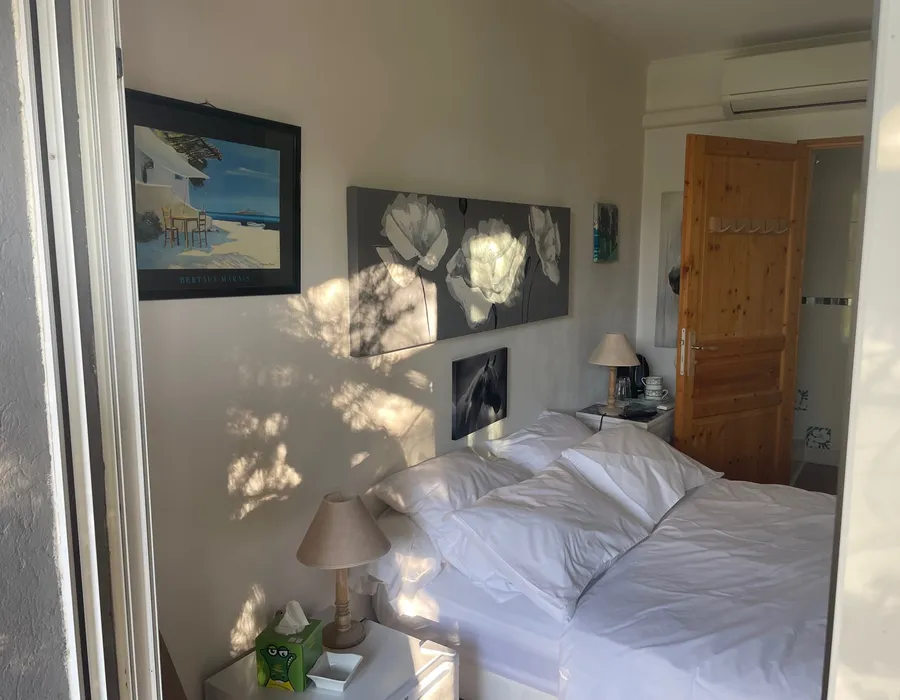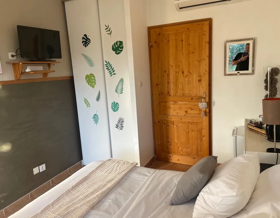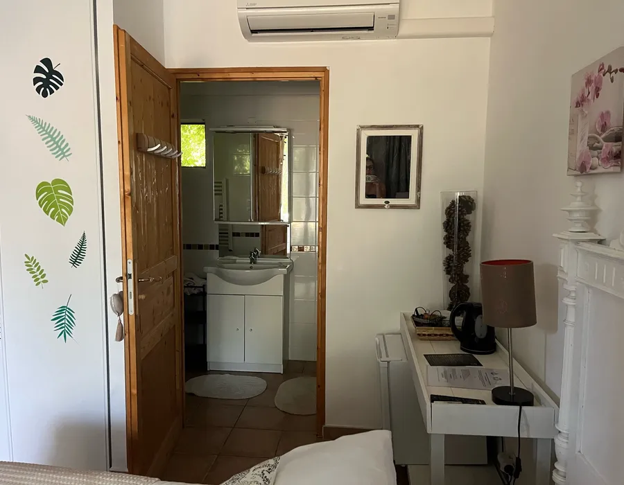Située en rez-de-jardin, la chambre Bélem offre un cocon calme et lumineux pour deux personnes. Avec son lit 140 cm, sa climatisation, sa télévision et ses équipements pratiques (mini-réfrigérateur, bouilloire), elle réunit tout le confort nécessaire pour un séjour serein.