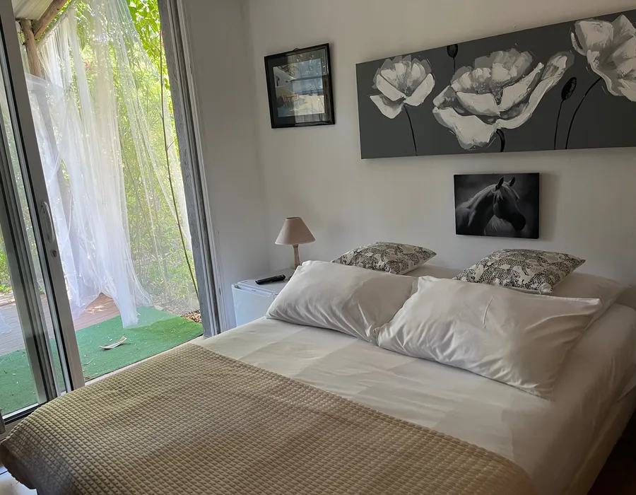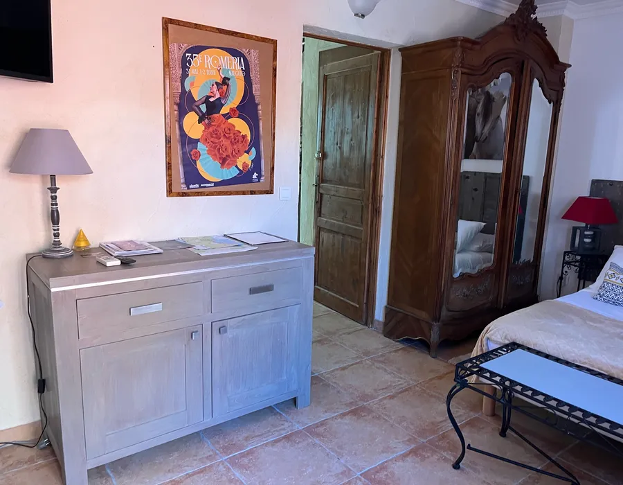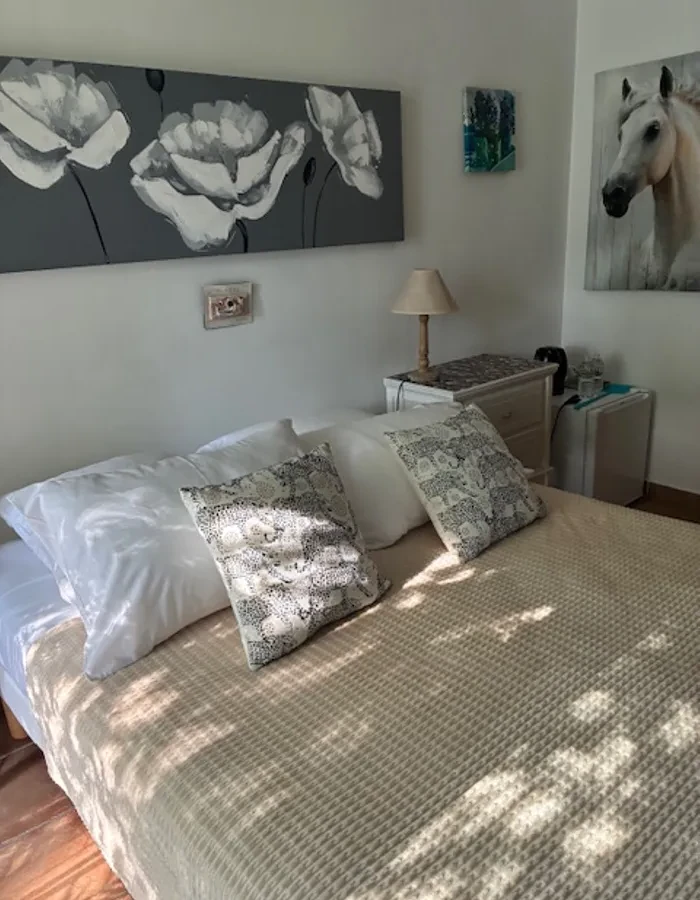 Entre simplicité, confort et sérénité, la chambre Florence est le point de départ idéal pour savourer un moment de détente au cœur de la Camargue.