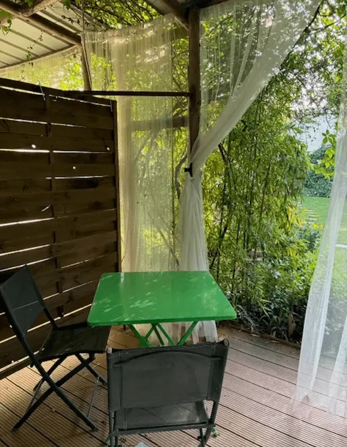 Profitez de la climatisation pour un confort optimal, d’une mini-réfrigérateur et d’une bouilloire pour vos pauses gourmandes, et laissez-vous bercer par le calme environnant et le chant des oiseaux.
