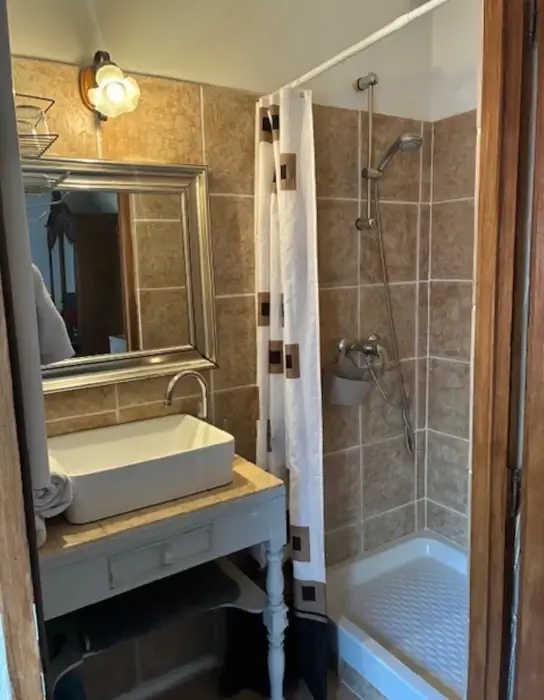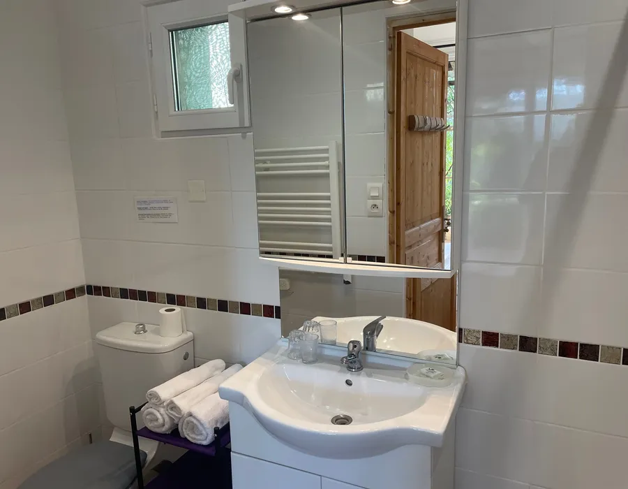 Située en rez-de-jardin, la chambre Florence offre un espace lumineux et apaisant, idéal pour un séjour à deux en toute tranquillité. Avec son lit 140 cm, sa salle de bains privative et sa terrasse ouverte sur le jardin, elle crée un véritable cocon où l’on se sent immédiatement bien.