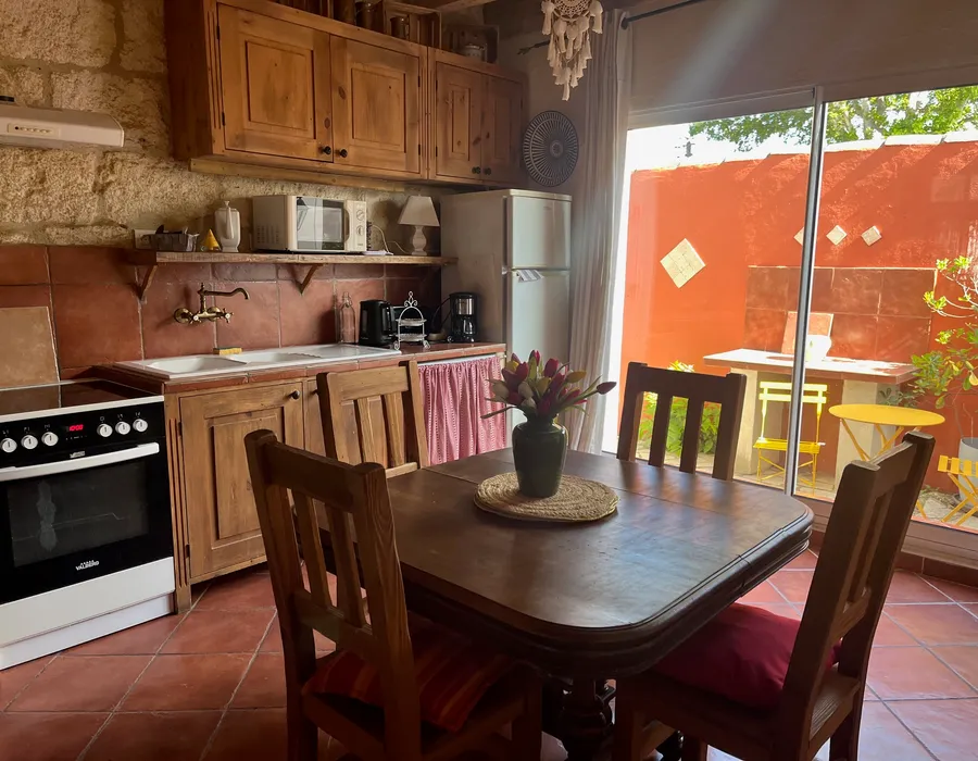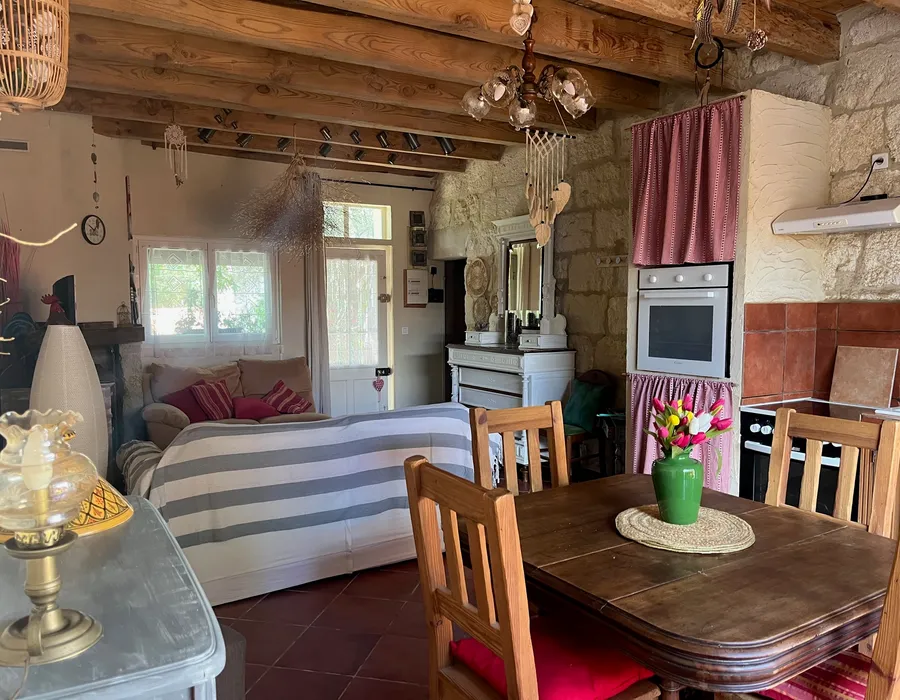 Ce charmant gîte de plain-pied, entièrement climatisé, offre une atmosphère intime et chaleureuse. Sa chambre confortable, sa salle de bains moderne et sa pièce de vie fonctionnelle en font un cocon parfait pour un séjour en duo. La terrasse privée, ouverte sur le jardin et la nature environnante, devient vite le spot préféré pour un petit-déjeuner au soleil ou un apéro en fin de journée.